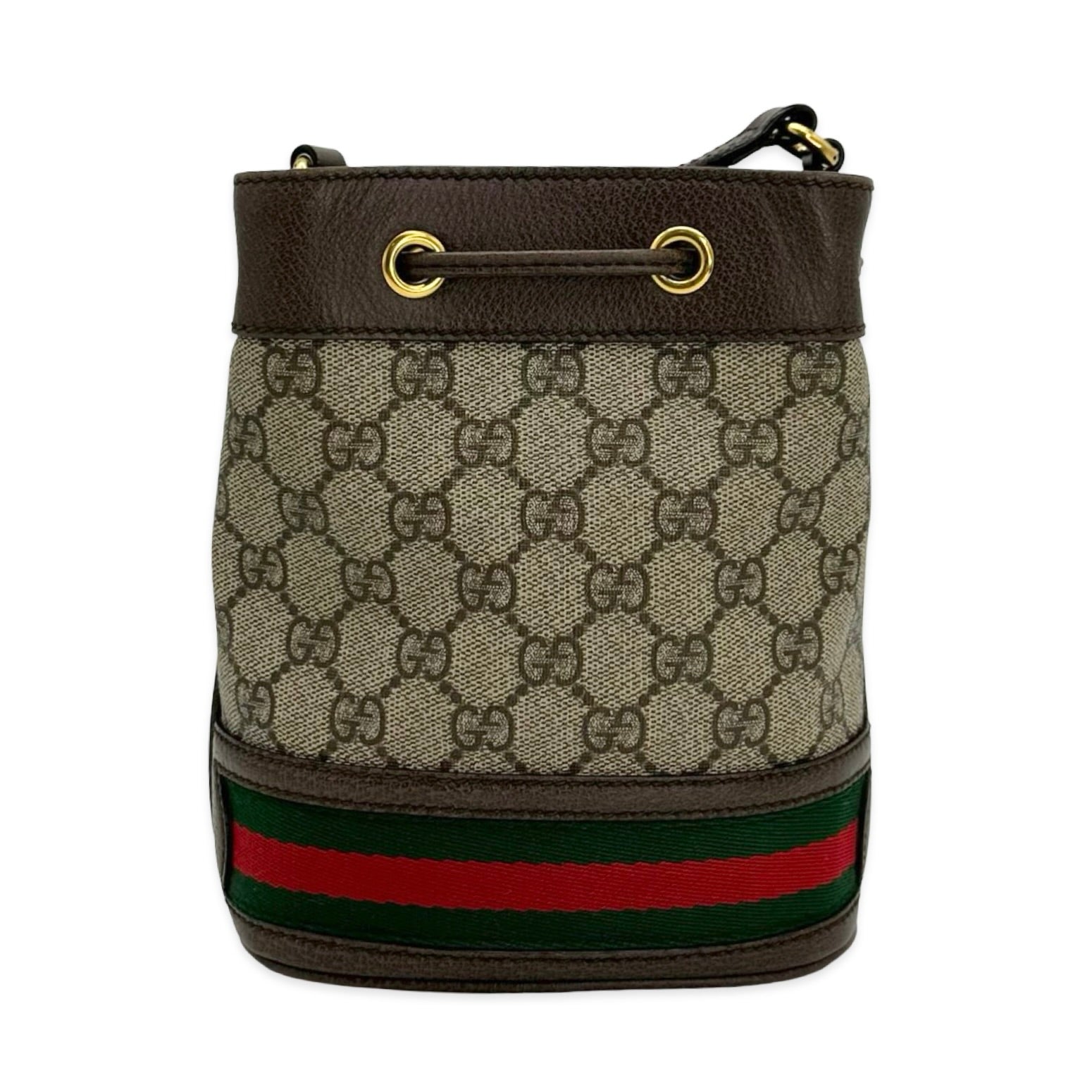 Unit price / perThis is an authentic Gucci Ophidia Mini Bucket Bag crafted of GG Supreme coated canvas with microfiber interior lining, matching leather trim and gold-tone hardware. Exterior Features: drawstring closure and leather shoulder strap. Interior Features: open compartment.