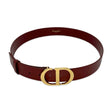 This is an authentic Christian Dior 30 Montaigne Belt crafted of calfskin leather in wine red with matching smooth leather trim and gold-tone buckle.