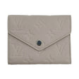 This is an authentic Louis Vuitton Victorine Wallet crafted of Monogram Empreinte embossed supple cowhide leather in Amplant grey with matching grained leather interior and silver-tone hardware. Exterior Features: snap closure. Interior Features: six (6) card slots, two (2) additional pockets, one (1) billfold and one (1) zip pocket.