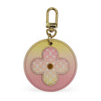 This is an authentic Louis Vuitton Bag Charm crafted of Monogram By the Pool coated canvas with gold-tone metal clasp, key ring and matching calfskin leather trim. Exterior Features: clasp and charms.