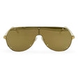 This is an authentic pair of Cartier Shield Sunglasses featuring gold-tone metal frames, signature decoration at side and gold finish mirror lenses.