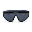 These are authentic Christian Dior DiorClub Shield Sunglasses crafted of gold-tone metal and blue nylon frames with Oblique patterned lenses and signature at front.