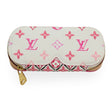 This is an authentic Louis Vuitton Glasses Case crafted of Monogram By the Pool coated canvas in Rose pink with natural cowhide leather trim and gold-tone hardware. Exterior Features: zip around closure.