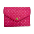 This is an authentic Louis Vuitton Victorine Wallet crafted of Micro Monogram Embossed calfskin leather in pink with matching leather interior and gold-tone hardware. Exterior Features: snap closure. Interior Features: six (6) card slots, two (2) additional pockets, one (1) billfold and one (1) zip pocket.