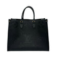 This is an authentic Louis Vuitton OnTheGo GM crafted of Monogram Empreinte embossed grained cowhide leather in Black with matching cowhide leather trim, microfiber interior lining and gold-tone hardware. Exterior Features: two (2) leather top handles and two (2) leather shoulder straps. Interior Features: hook closure, one (1) flat zip pocket and two (2) flat pockets.