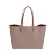 This is an authentic Christian Louboutin Spiked Large Cabata Tote bag crafted of calfskin leather in pink with signature Red Empire leather interior, matching leather trim, metal spike accents and gold-tone hardware. Exterior Features: two (2) top handles, decorated spikes at handle base and signature rubber sole base. Interior Features: open top, clip closure and one (1) removable calfskin leather interior zip pouch.