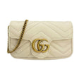 This is an authentic Gucci Super Mini GG Marmont Chain Bag crafted of Diagonal Quilted calfskin leather in cream with matching leather trim, beige microfiber interior lining and gold-tone hardware. Exterior Features: press-stud closure and optional chain shoulder strap. Interior Features: open compartment with removable key chain hook.