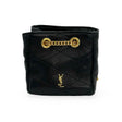 This is an authentic Saint Laurent Baby Bucket Bag crafted of quilted lambskin leather in black, with black grosgrain interior, and gold-tone hardware. Exterior Features: drawstring chain closure and sliding gourmette chain. Interior Features: open compartment.