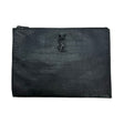 This is an authentic Saint Laurent Large Cassandre Zip clutch pouch crafted of Croc Embossed matte leather in black with black cotton interior lining and black metal hardware. Exterior Features: zip closure. Interior Features: open compartment, eight (8) card slots and one (1) flat pocket.