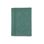 This is an authentic Chanel CC Vertical Bifold Card Holder Wallet crafted of Quilted Caviar leather in Light Blue Green with matching leather interior and silver-tone hardware. Exterior Features: one (1) card slot at reverse. Interior features: two (2) card slots, one (1) flat pocket and one (1) ID slot.