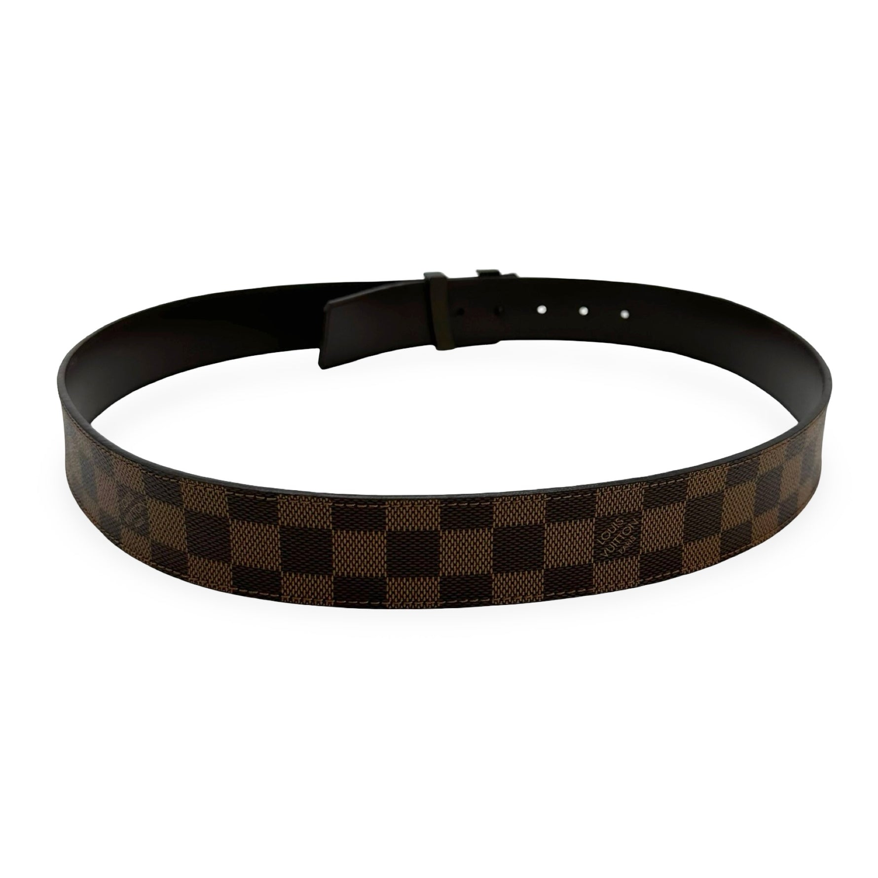 Unit price / perThis is an authentic Louis Vuitton Initiales Belt crafted of Damier Ebene coated canvas with dark brown leather trim and brown metal buckle.