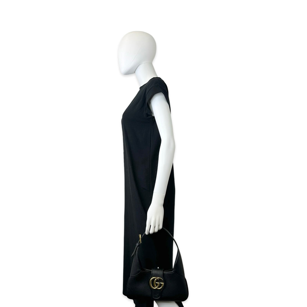 Unit price / perThis is an authentic Gucci GG Small Aphrodite Shoulder Bag crafted of Grained Calfskin leather in Black with matching leather trim, black microfiber interior lining and gold-tone hardware. Exterior Features: magnetic flap closure, one (1) adjustable top handle strap and one (1) optional/adjustable extender shoulder strap. Interior Features: open compartment.