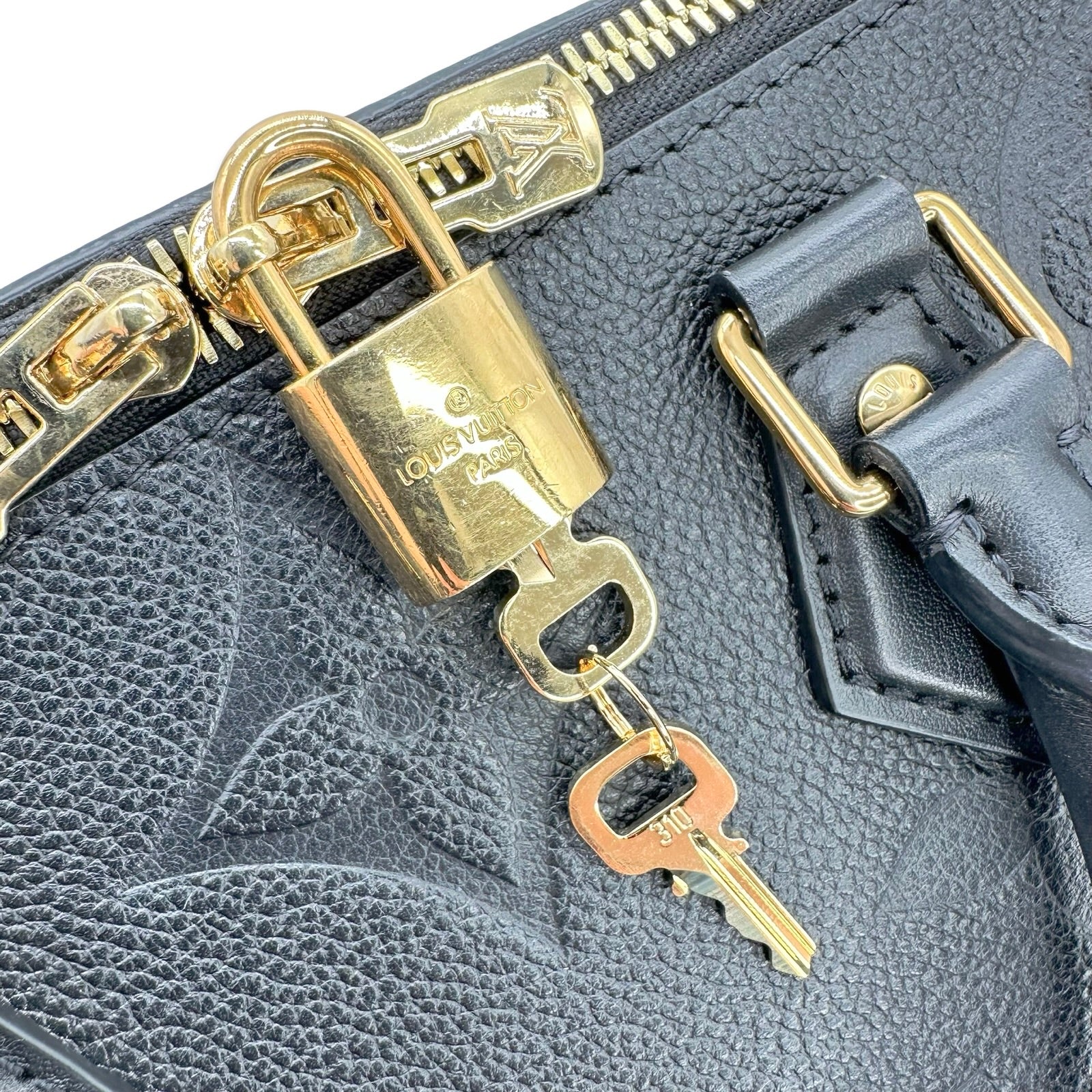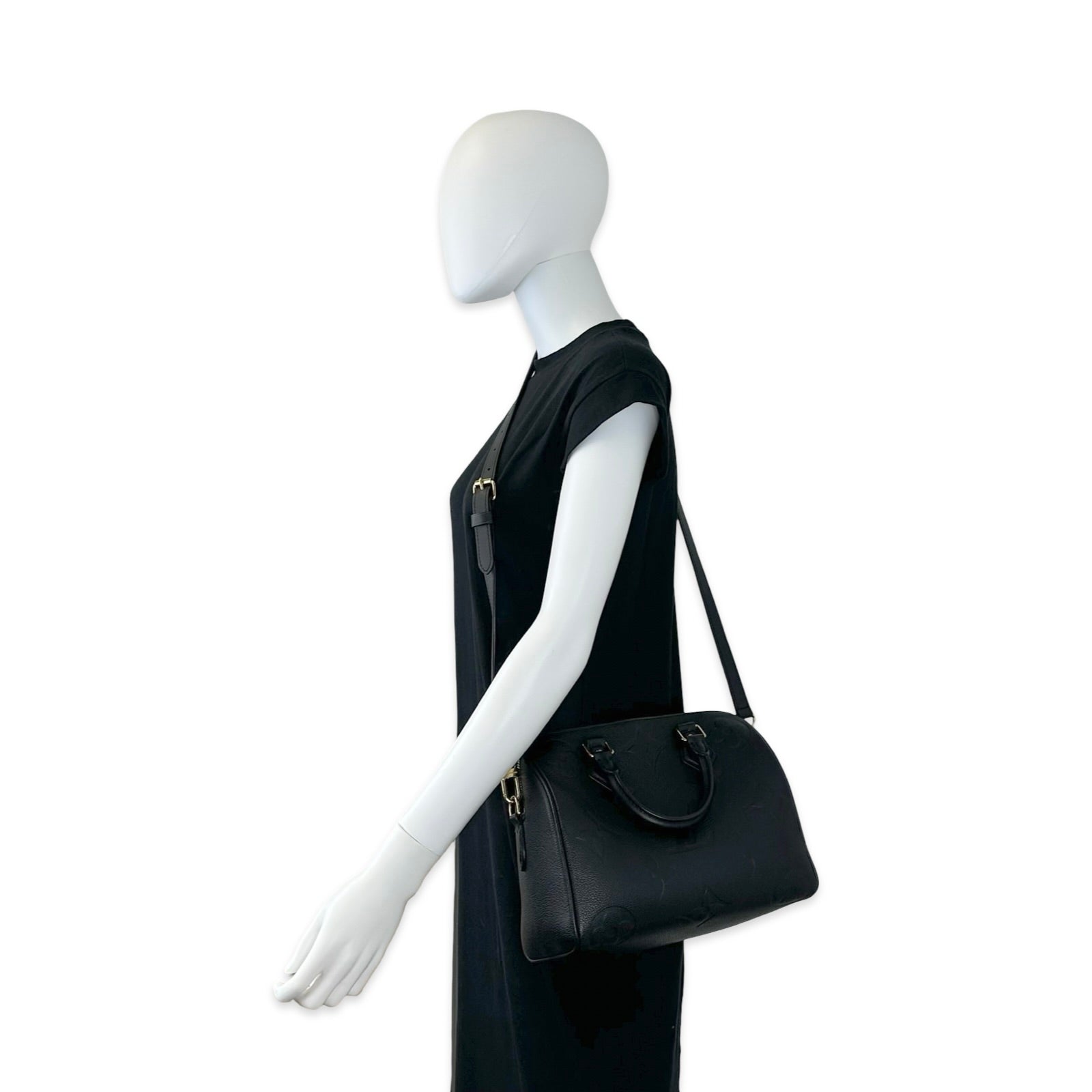Unit price / perThis is an authentic Louis Vuitton Speedy Bandouliere 25 crafted of Monogram Empreinte leather in Black with matching smooth cowhide leather trim, black microfiber interior lining and gold-tone hardware. Exterior Features: double zip closure, two (2) leather top handles and one (1) removable/adjustable shoulder strap. Interior Features: open compartment, one (1) zip pocket, and one (1) flat pocket.