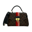This is an authentic Louis Vuitton Georges BB crafted of Monogram coated canvas with black smooth cowhide leather trim, red textile interior lining and gold-tone hardware. Exterior Features: magnetic clasp closure, leather top handle, and optional leather shoulder strap. Interior Features: partitioned compartment and one (1) flat pocket.