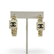 This is an authentic pair of Chanel CC chain hoop earrings crafted of gold-tone metal with enamel motif and post closure.