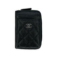 CHANEL: Quilted Caviar Vertical Zip Card Holder Wallet