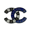 This is an authentic Chanel CC Nautical Brooch crafted of resin with blue, white and black motif, gold-tone accents and a bar-pin fastening closure.