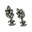 This is an authentic pair of Chanel CC Leaf Post Drop Earrings crafted of silver-tone finish gunmetal with crystals, leaf motif and single post closure.