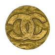 This is an authentic Vintage Chanel CC Medallion Brooch crafted of antique gold-tone metal and a bar-pin fastening closure.