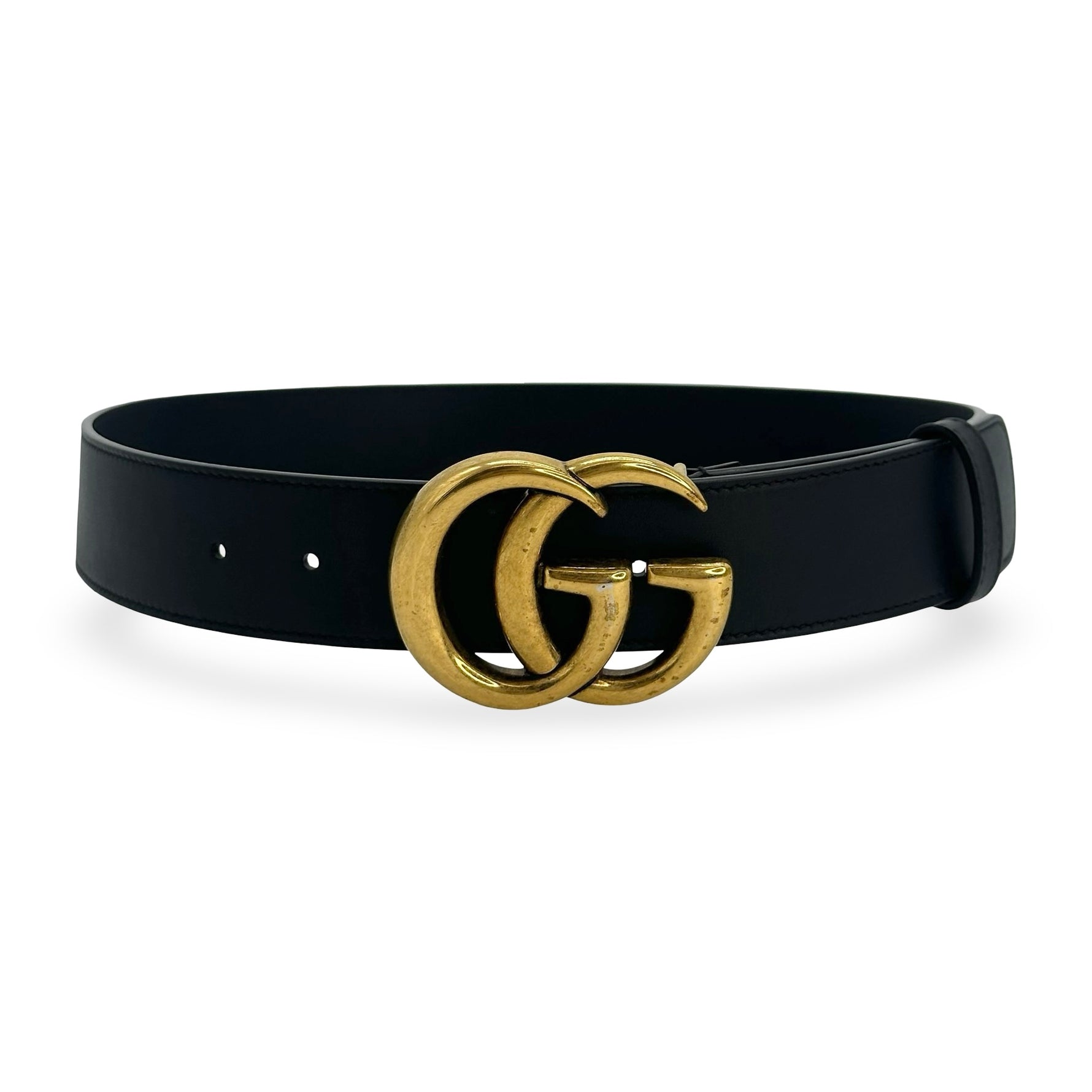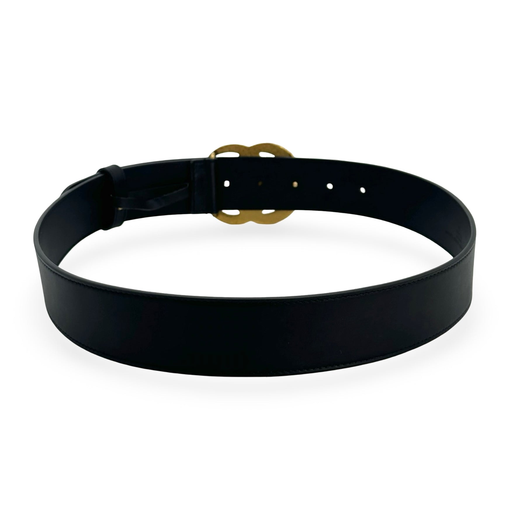 Unit price / perThis is an authentic Gucci GG Marmont Wide Belt crafted of smooth leather in Black with antique gold-tone Double G buckle and matching leather trim.
