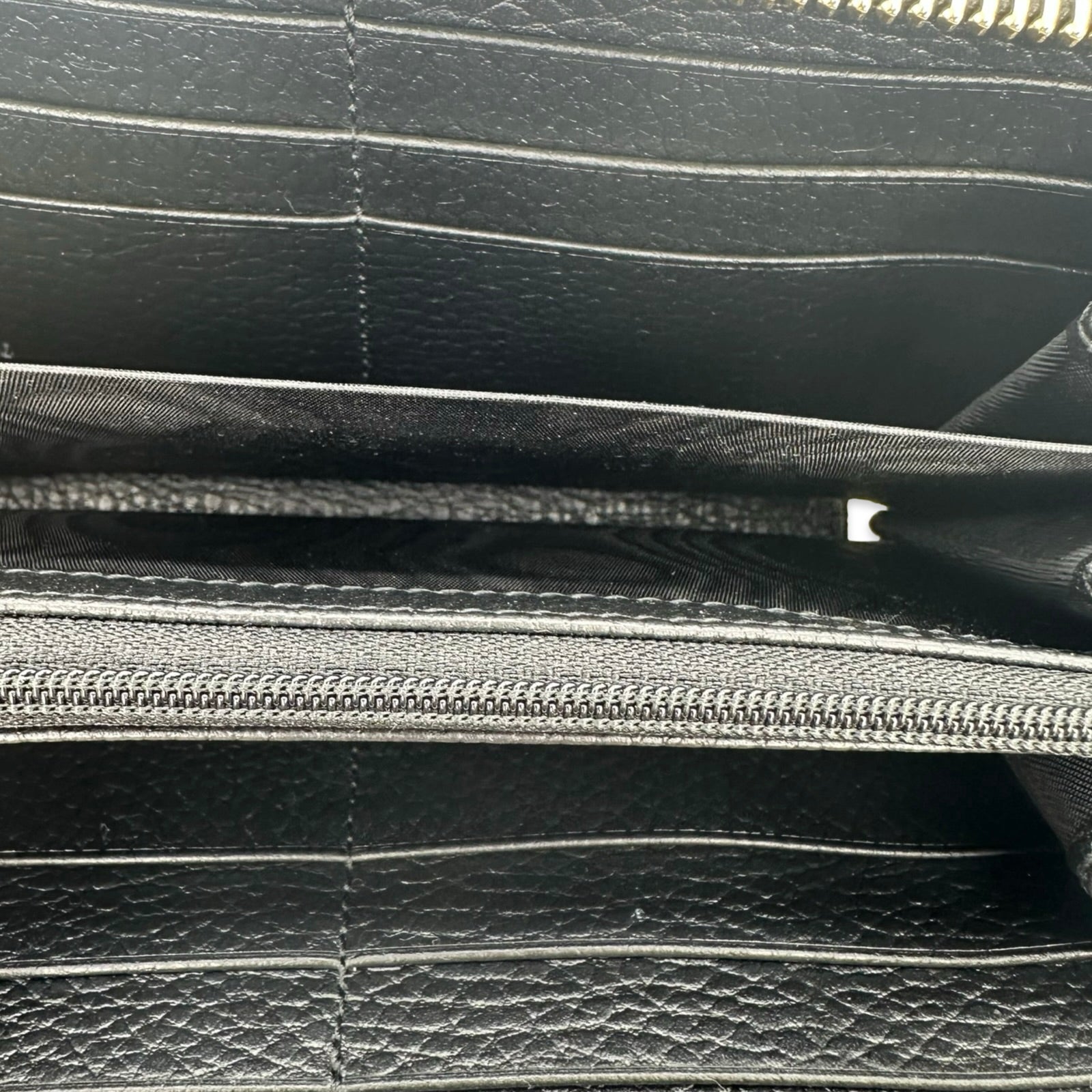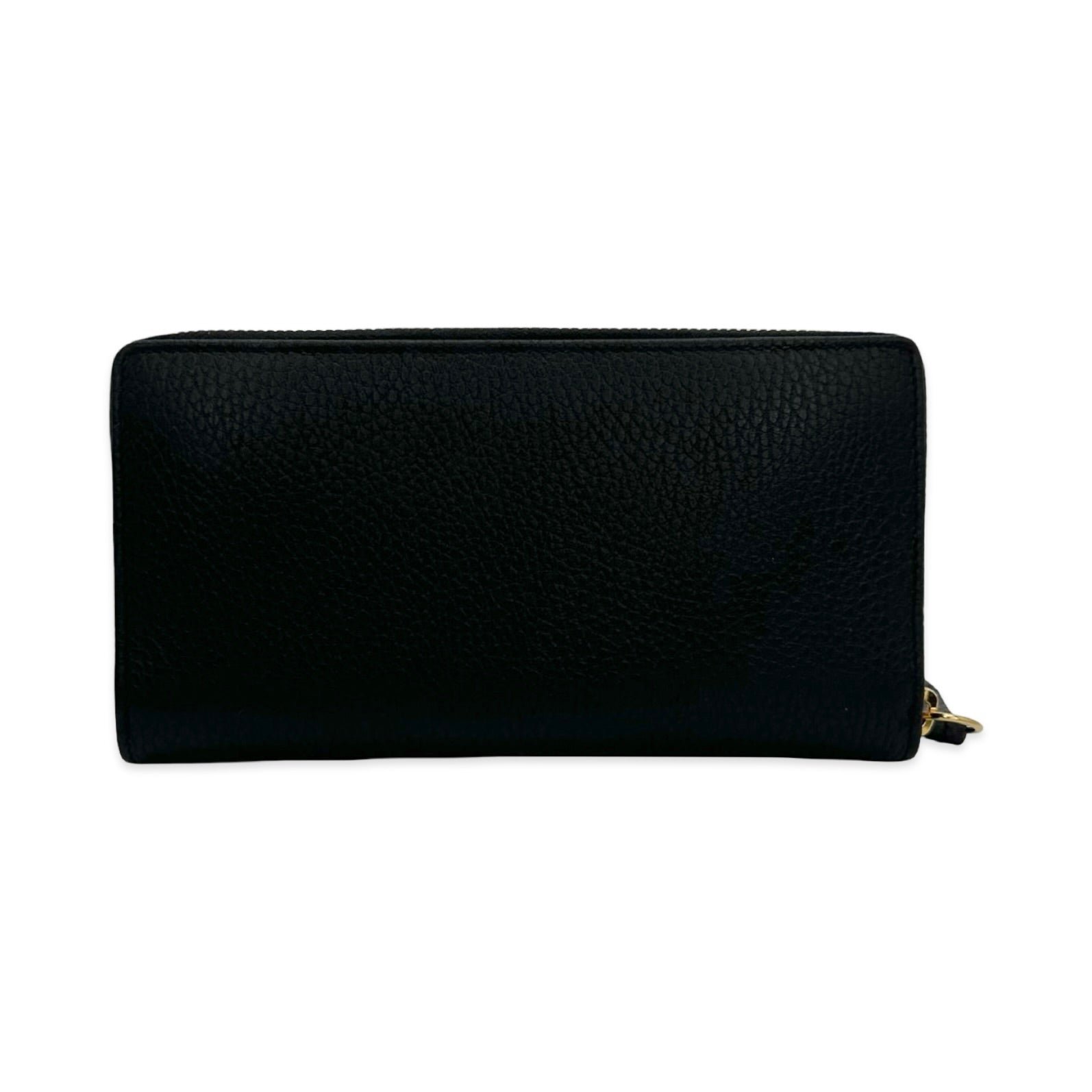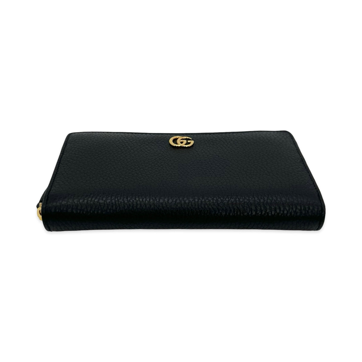 Unit price / perThis is an authentic Gucci GG Marmont Zip Around Wallet crafted of Grained Calfskin Leather in black with leather and nylon lining and gold-tone hardware. Exterior Features: zip around closure. Interior Features: twelve (12) card slots, three (3) gusseted compartments and one zip pocket.