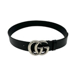 Unit price / perThis is an authentic Gucci GG Marmont Wide Belt crafted of smooth calfskin leather in Black with silver-tone Double G buckle and matching leather trim. Size 85 (US 34).