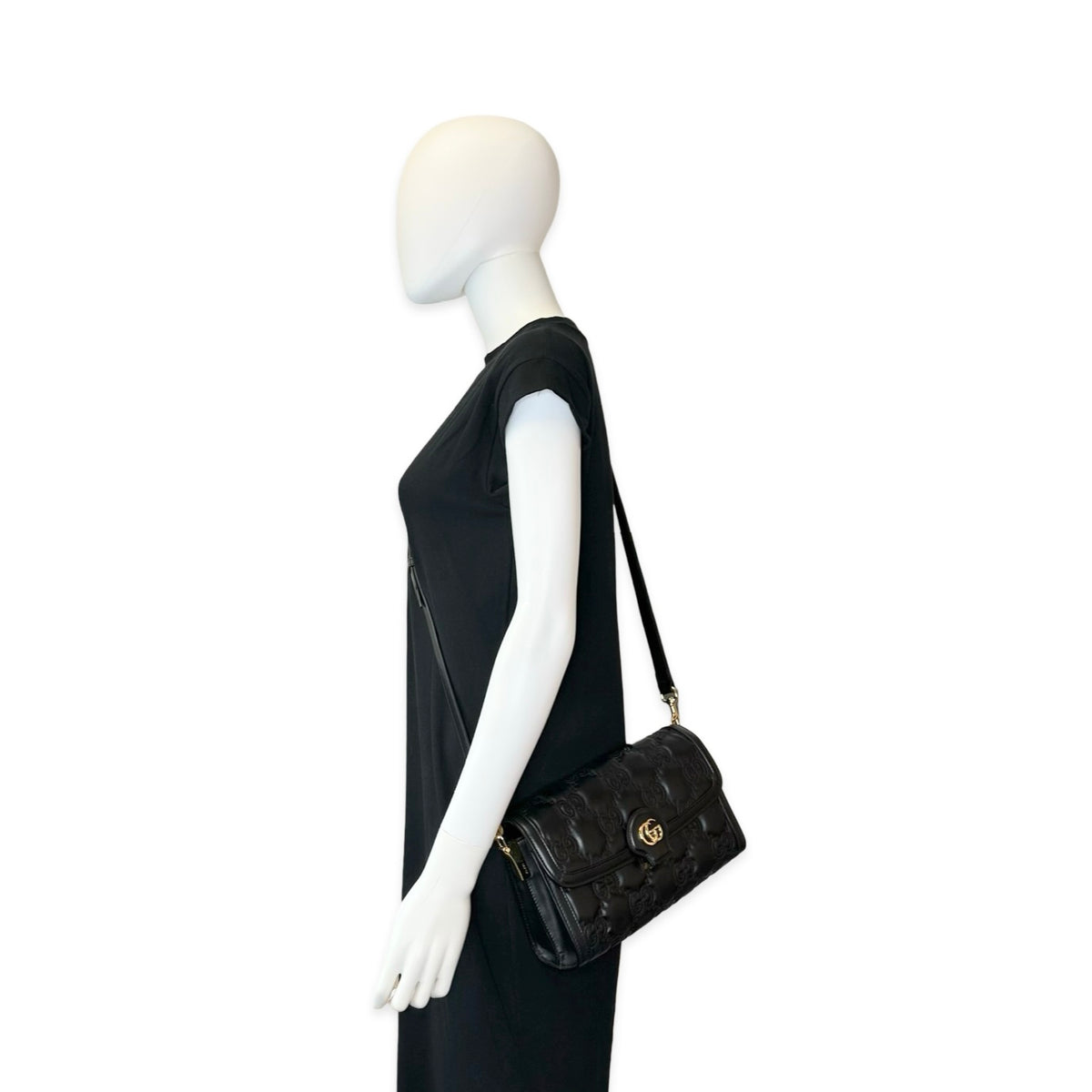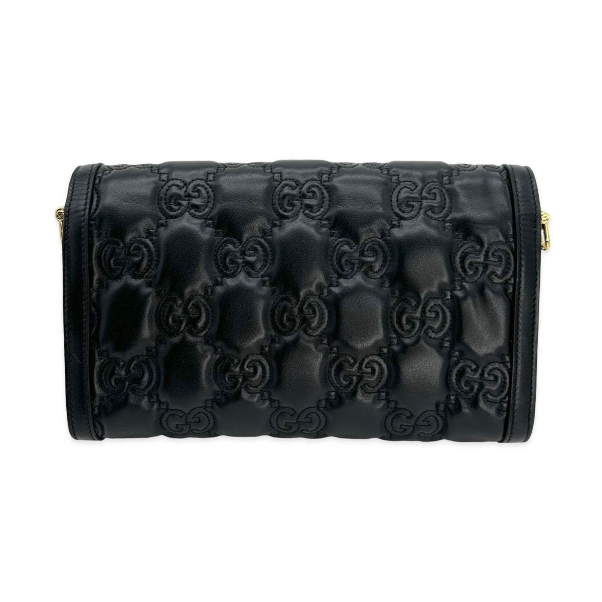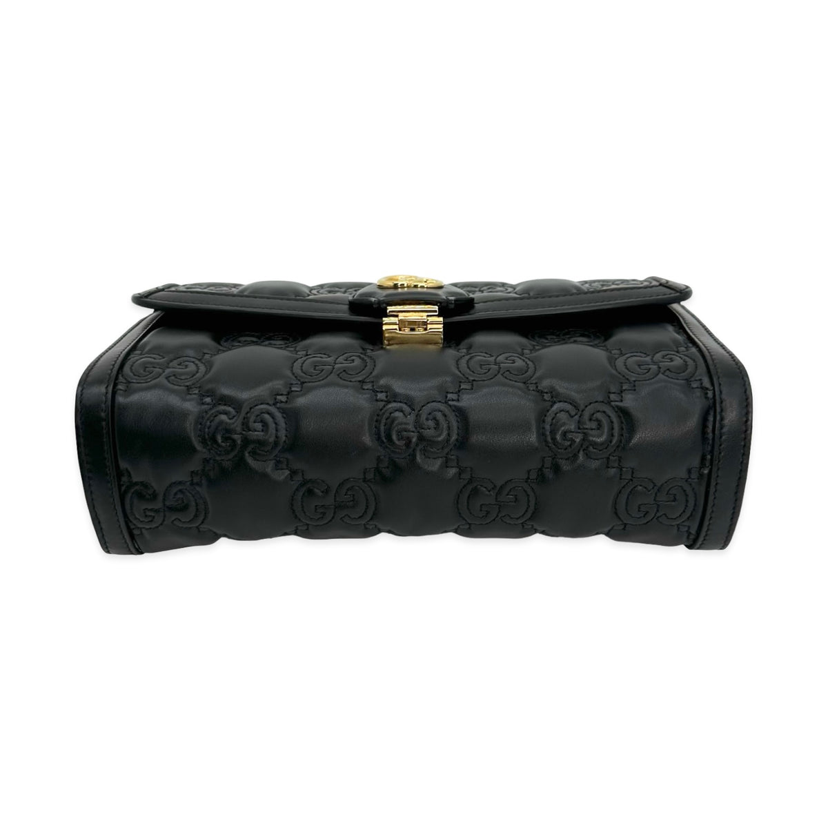 Unit price / perThis is an authentic Gucci Small Flap Shoulder Bag crafted of Matelasse quilted GG calfskin leather in black with matching leather trim, cotton linen interior lining and gold-tone hardware. Exterior Features: flap closure, one (1) optional leather strap and one (1) optional adjustable canvas strap. Interior Features: separate compartment with one (1) center pocket.