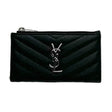This is an authentic Saint Laurent Fragments Zip Card Case crafted of Grain de Poudre Matelasse calfskin leather in black with silver-tone hardware and matching interior lining. Exterior Features: five (5) card slots and zip closure. Interior Features: one (1) zip compartment.