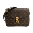 This is an authentic Louis Vuitton Pochette Metis crafted of Monogram coated canvas with cowhide leather trim, microfiber textile interior lining and gold-tone hardware. Exterior Features: S-lock closure, one (1) leather top handle, one (1) back zip pocket and optional adjustable shoulder strap. Interior Features: three (3) partitioned interior compartments.