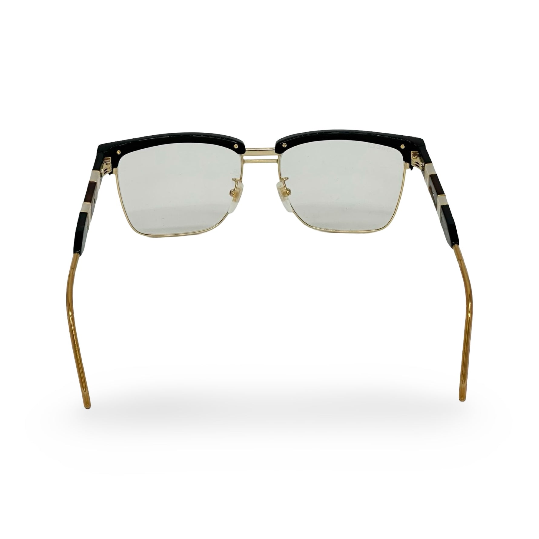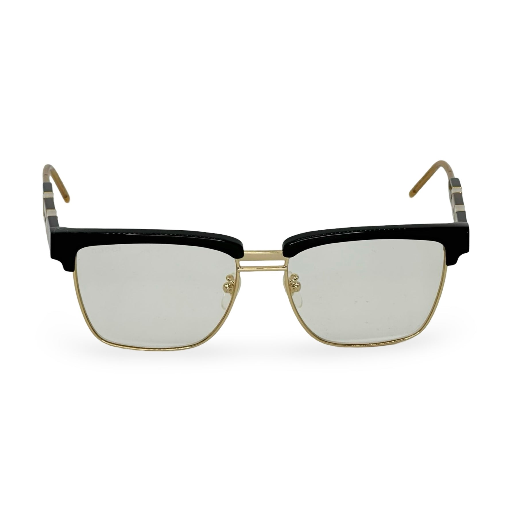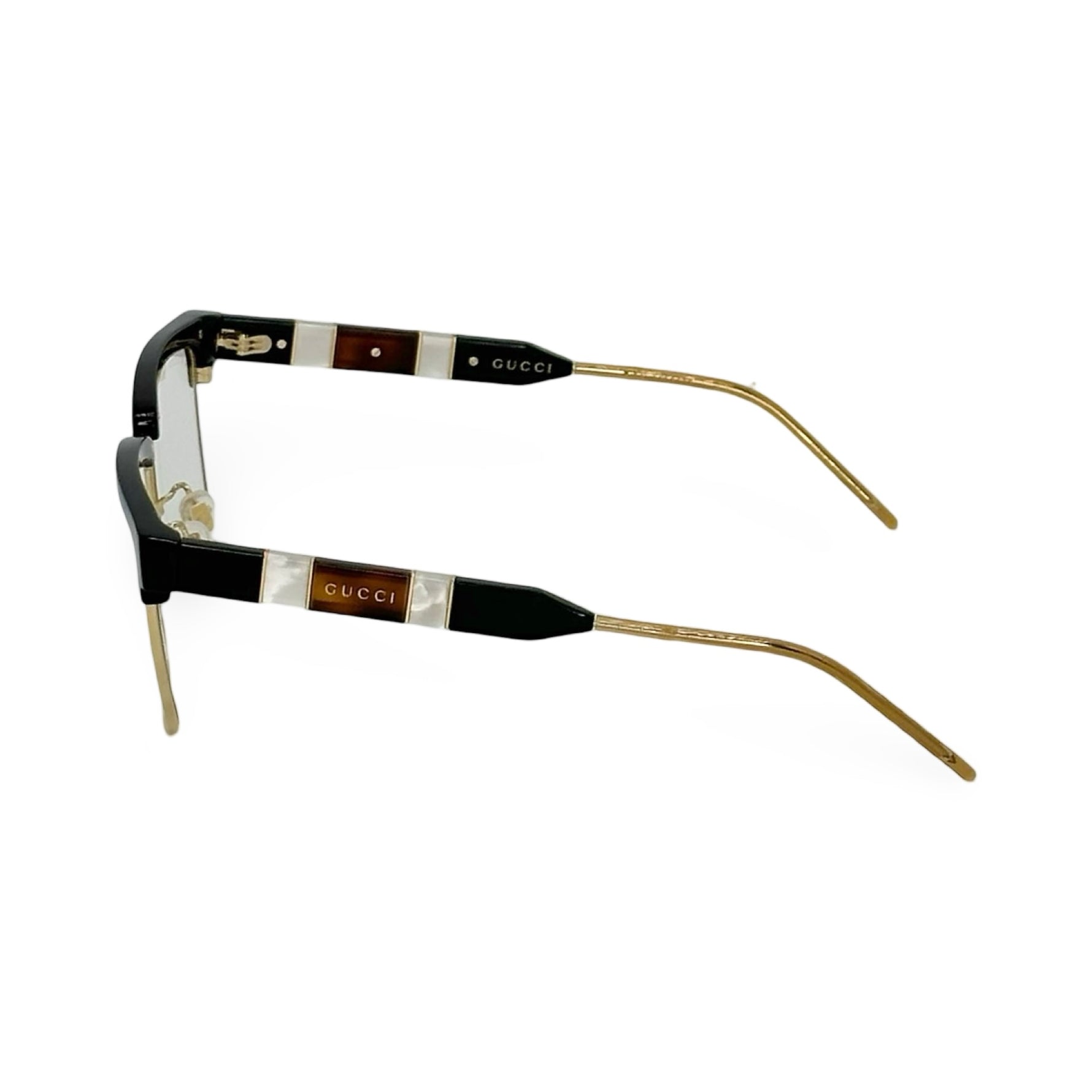 These are authentic Gucci Square frames with gold-tone metal wire frames, signature at sides and clear lenses.