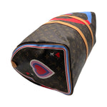 This is an authentic Louis Vuitton Game On Keepall Bandouliere 45 crafted of Monogram coated canvas with limited edition print throughout, natural cowhide leather trim, brown textile interior lining and gold-tone hardware. Exterior Features: double zip closure, two (2) leather top handles and optional adjustable leather strap. Interior Features: large open compartment, one (1) flat pocket and one (1) d-ring.