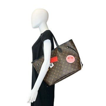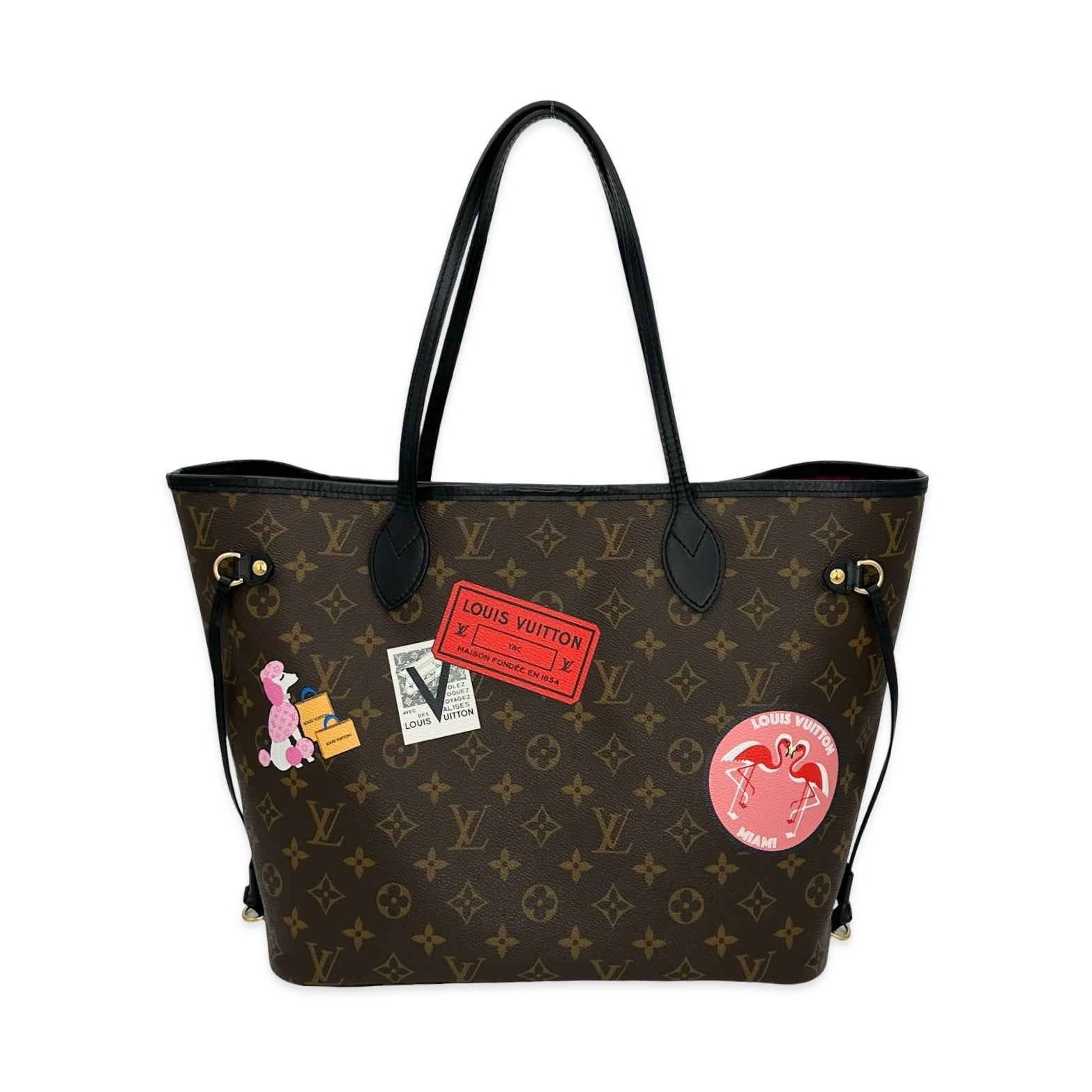 Unit price / perThis is an authentic Louis Vuitton World Tour Neverfull MM crafted of Monogram coated canvas with red striped textile interior lining, black leather trim and gold-tone hardware. Exterior Features: two (2) top handles and four (4) side laces. Interior Features: open compartment with one (1) flat zip pocket, one (1) D-ring and hook closure.