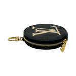 This is an authentic Louis Vuitton Round Coin Purse crafted of Monogram Empreinte Bicolor leather in cream/black with matching leather interior and gold-tone hardware. Exterior Features: zip closure and one (1) clasp. Interior Features: open compartment.