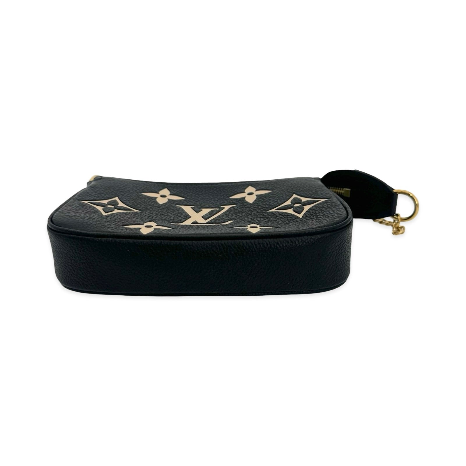 Unit price / perThis is an authentic Louis Vuitton Mini Pochette Accessoires crafted of Bicolor Monogram Empreinte embossed grained cowhide leather in Black/Cream with black microfiber interior lining and gold-tone hardware. Exterior Features: zip closure and chain strap. Interior Features: open compartment.
