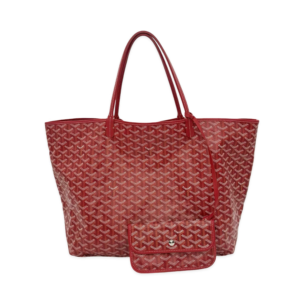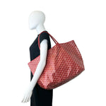 This is an authentic Goyard Saint Louis GM bag crafted of Goyardine coated canvas in Red with matching Chevroches Calfskin leather trim, unlined linen interior and silver-tone hardware. Exterior Features: two (2) top handles. Interior Features: open compartment and one (1) attached pochette with button snap closure.