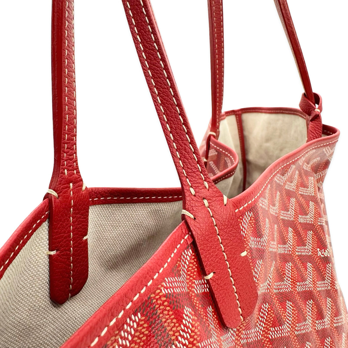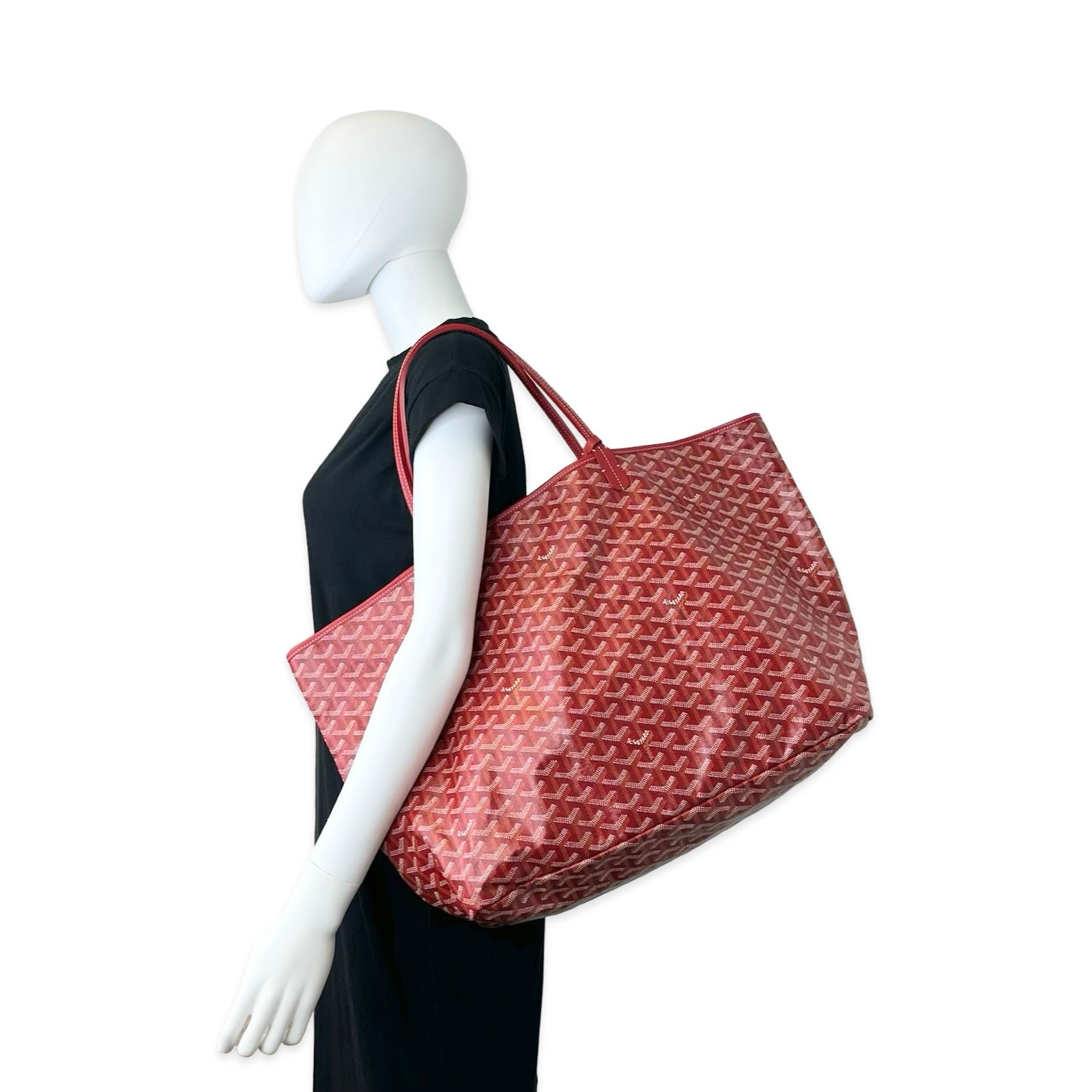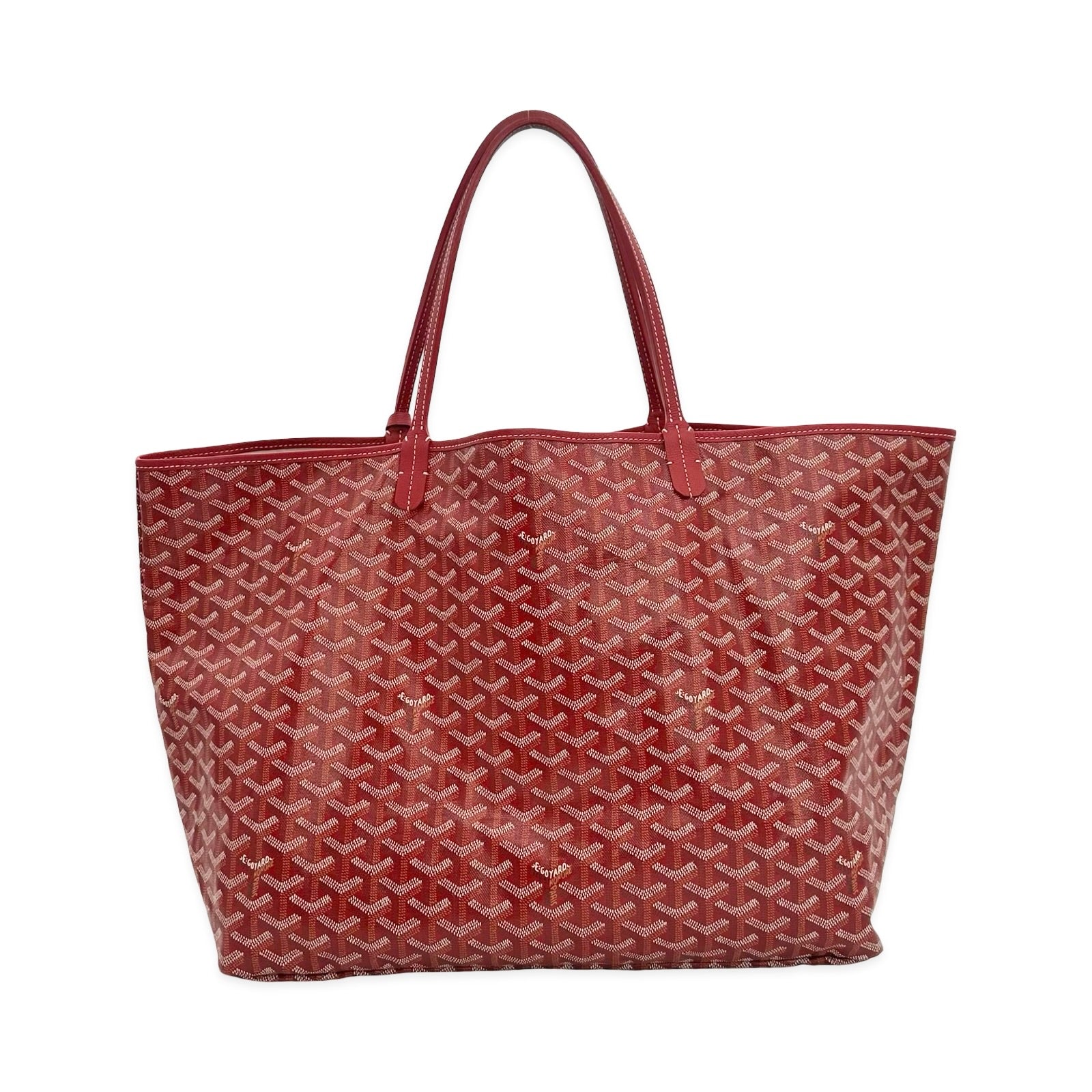 Unit price / perThis is an authentic Goyard Saint Louis GM bag crafted of Goyardine coated canvas in Red with matching Chevroches Calfskin leather trim, unlined linen interior and silver-tone hardware. Exterior Features: two (2) top handles. Interior Features: open compartment and one (1) attached pochette with button snap closure.