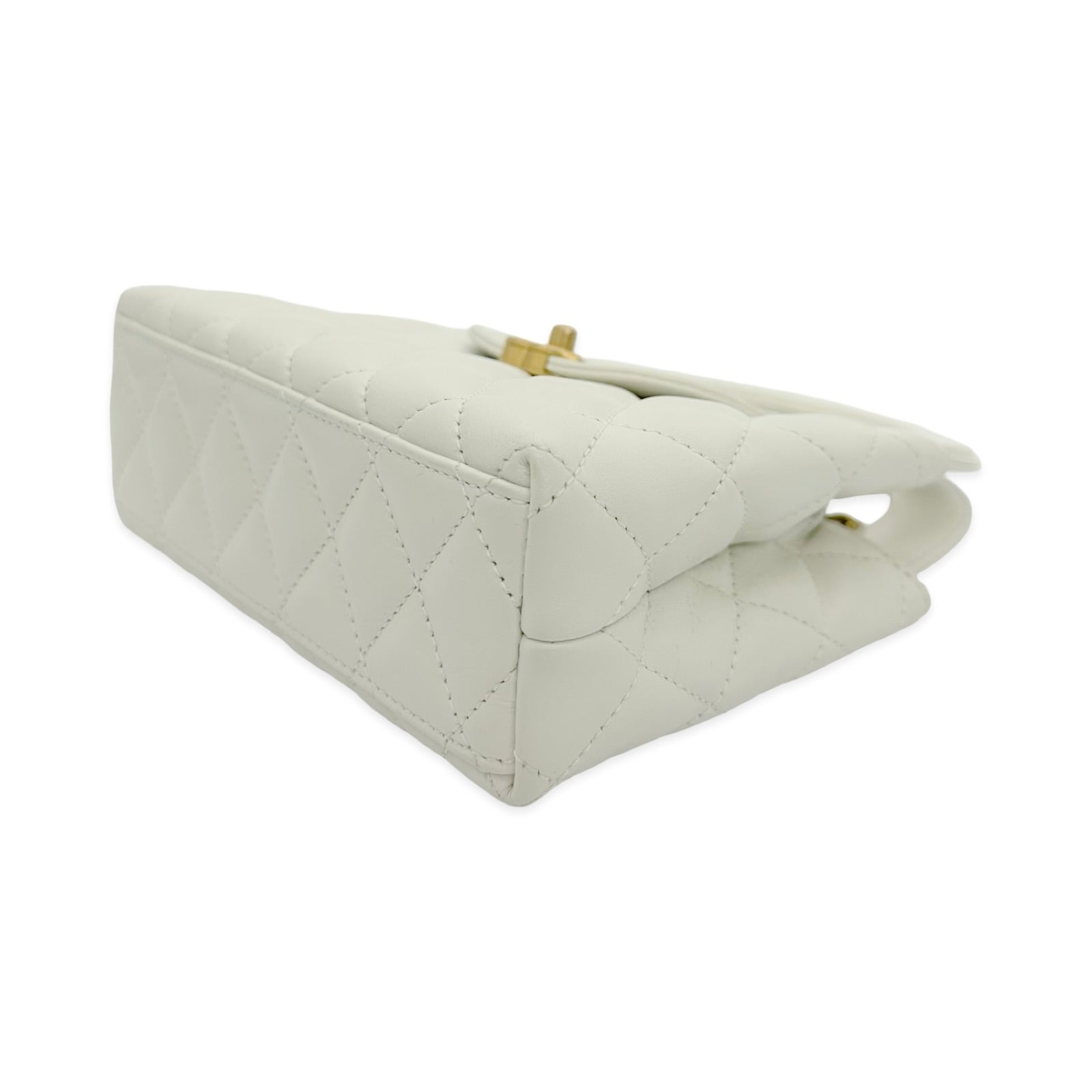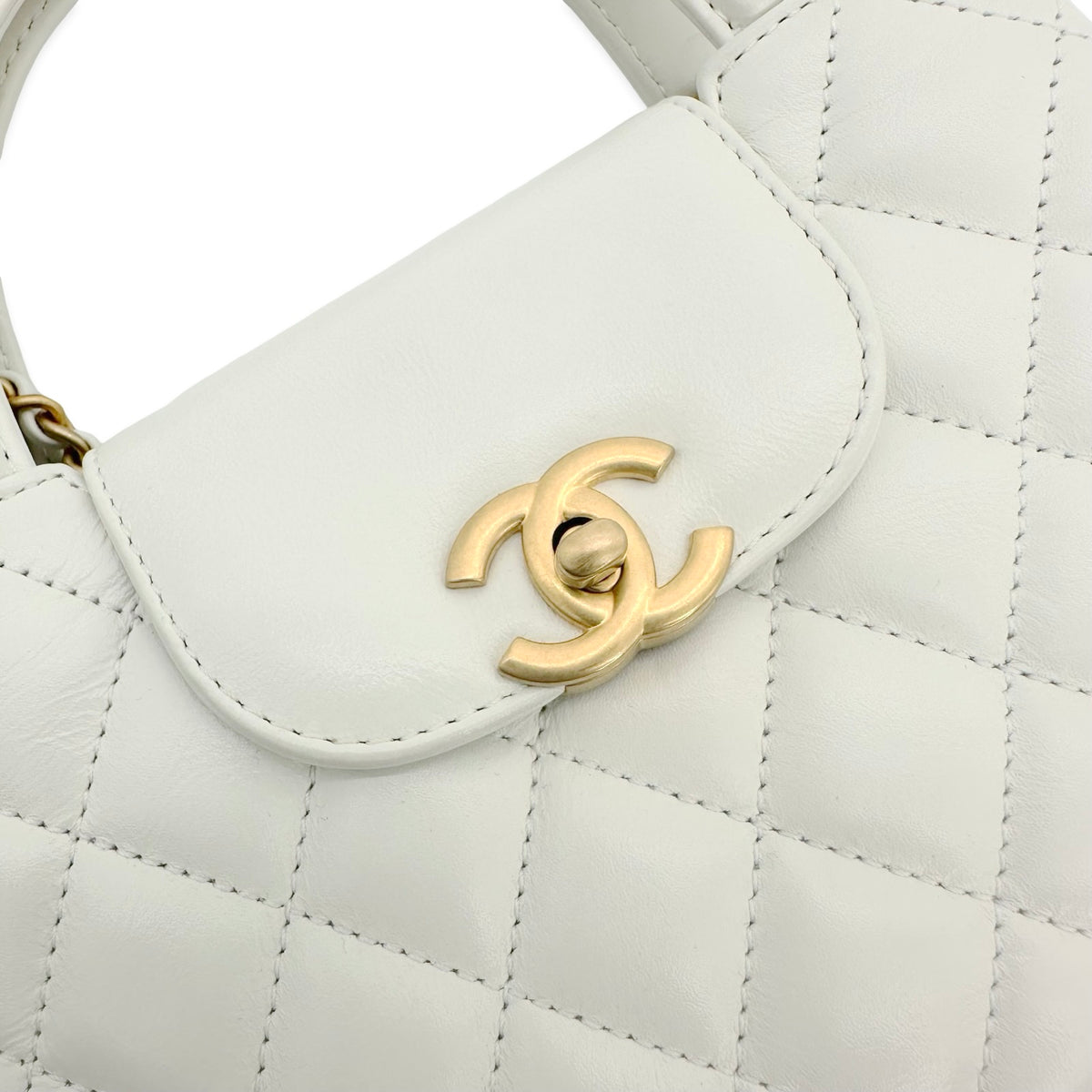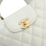 This is an authentic Chanel Nano Kelly bag crafted of Quilted Lambskin leather in White with matching leather trim, white leather interior and gold-tone hardware. Exterior Features: CC turn-lock closure, two (2) top handles and one (1) braided leather chain strap. Interior Features: open compartment, one (1) flat pocket and one (1) zip pocket.