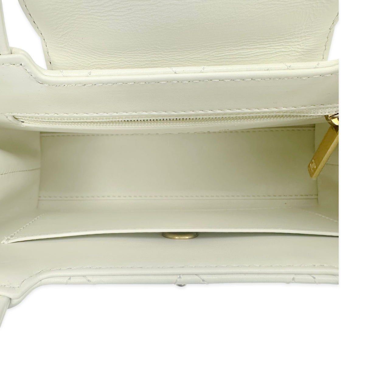Unit price / perThis is an authentic Chanel Nano Kelly bag crafted of Quilted Lambskin leather in White with matching leather trim, white leather interior and gold-tone hardware. Exterior Features: CC turn-lock closure, two (2) top handles and one (1) braided leather chain strap. Interior Features: open compartment, one (1) flat pocket and one (1) zip pocket.