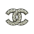 This is an authentic Chanel CC Pearl Large Brooch with glass pearls, gunmetal silver-tone metal and a bar-pin fastening closure.