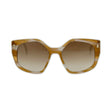 This is an authentic pair of Fendi FF Geometric Sunglasses crafted of tan stripe and white acetate frames with gold-tone accents and gradient brown lenses.