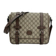 This is an authentic Gucci Messenger Bag crafted of GG Supreme coated canvas with grained brown leather trim, red cotton interior lining, and silver-tone hardware. Exterior Features: magnetic snap closure, one (1) flat pocket at back and one (1) adjustable shoulder strap. Interior Features: open compartment and one (1) patch pocket.
