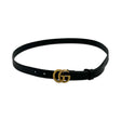 This is an authentic Gucci GG Marmont thin belt crafted of smooth calfskin leather in black with antique gold-tone Double G buckle.