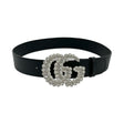 This is an authentic Gucci GG Marmont Wide Leather Belt crafted of smooth black calfskin leather with silver-tone Double G buckle and crystal embellishments. Size 85 (US 34).