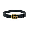 This is an authentic Gucci GG Marmont Wide Belt crafted of smooth calfskin leather in Black with antique gold-tone Double G buckle and matching leather trim. Size 100 (US 40).