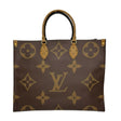 This is an authentic Louis Vuitton OnTheGo GM crafted of Giant Monogram and Monogram Reverse coated canvas with red textile lining and gold-tone hardware. Exterior Features: two (2) Monogram canvas top handles and two (2) leather shoulder straps. Interior Features: hook closure, one (1) flat zip pocket and two (2) flat pockets.
