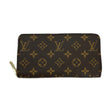 This is an authentic Louis Vuitton Zippy Wallet crafted of Monogram coated canvas with brown grained cowhide leather interior and gold-tone hardware. Exterior Features: zip around closure. Interior Features: three (3) large gusseted compartments, one (1) zip pocket, twelve (12) card slots, one (1) open compartment for bills and two (2) patch pockets.