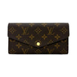 This is an authentic Louis Vuitton Sarah Wallet crafted of Monogram coated canvas with red leather interior and gold-tone hardware. Exterior Features: press-stud closure and one (1) flat pocket at back. Interior Features: two (2) gusseted compartments, one (1) center zip pocket, two (2) flat pockets, and twelve (12) card slots.
