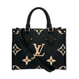 This is an authentic Louis Vuitton Onthego PM crafted of Monogram Empreinte Bicolor embossed grained cowhide leather in Black and Cream with black grained cowhide leather trim, red microfiber interior lining and gold-tone hardware. Exterior Features: hook closure, two (2) leather top handles, and one (1) removable/adjustable leather shoulder strap. Interior Features: inside double pocket, one (1) zip pocket, and two (2) flat pockets.