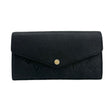This is an authentic Louis Vuitton Sarah wallet crafted of Monogram Empreinte supple embossed grained leather in Black with matching interior and gold-tone hardware. Exterior Features: press stud closure and flat pocket at back. Interior Features: two (2) large gusseted compartments, one (1) zip pocket, sixteen (16) card slots and one (1) flat pocket.