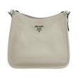 This is an authentic Prada Vitello Daino Soft Hobo Messenger Crossbody crafted of soft calfskin leather in white with matching leather trim, tonal leather interior and silver-tone hardware. Exterior Features: one (1) optional jacquard logo canvas strap and magnetic closure. Interior Features: open compartment, one (1) zip pocket and one (1) flat pocket.